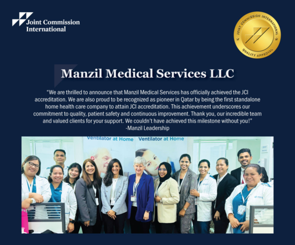 Manzil Medical Services proudly holds the distinction of being the first standalone home healthcare provider in Qatar to achieve Joint Commission International (JCI) accreditation—an internationally recognized benchmark for quality and patient safety. This milestone reflects our unwavering commitment to maintaining the highest standards of healthcare delivery.