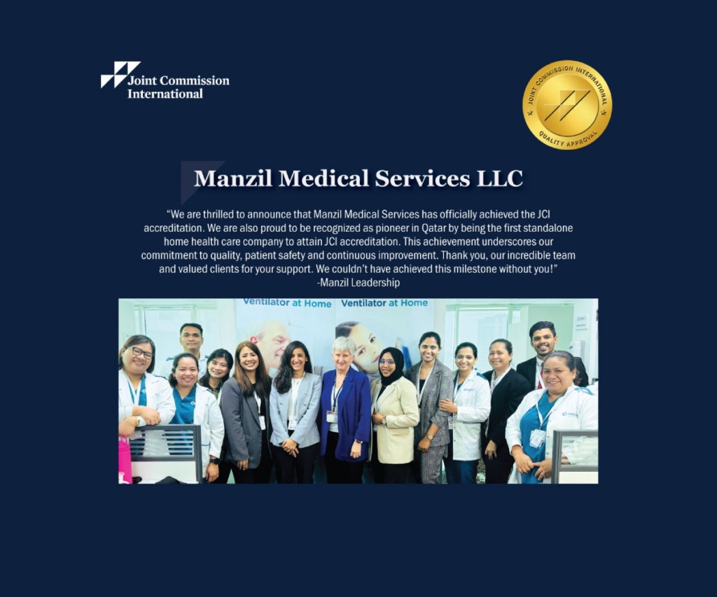 Manzil Medical Services is proud to be the first home healthcare provider in the State of Qatar to receive Joint Commission International (JCI) accreditation, a globally recognized gold standard for patient safety, quality of care, and clinical excellence.